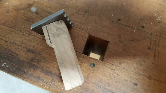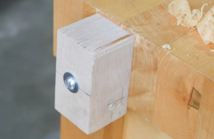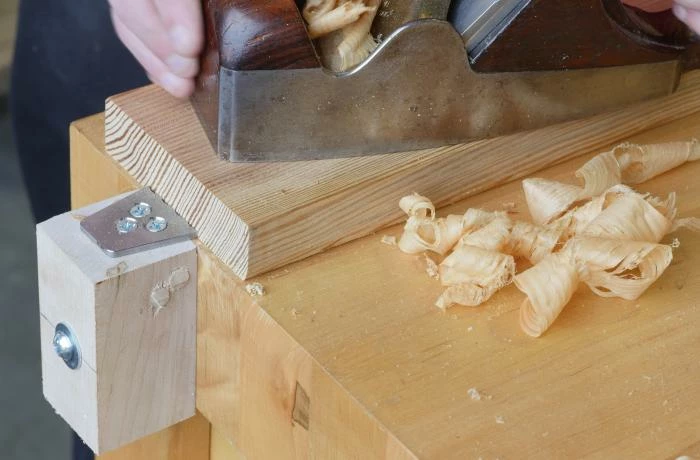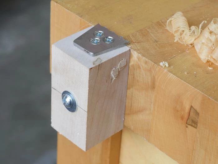 Larger, more traditional planing stops typically require chopping a big square hole in your workbench. We hate that. We understand that some people don’t mind the work and modification, but for us, modifying our workbench for specialized use is undesirable. Also, if you have the ability to move the planing stop around for different setups, it will be a lot more versatile. Our favorite method for installation is at the end of the bench using a bolt and a barrel nut installed in the bench. We currently offer a small hardware kit with an integrated knob and 4″ 1/4-20 stud, a washer and a barrel nut. The installation is pretty simple requiring drilling only two holes in your workbench. Click the link below for instructions and other installation ideas.