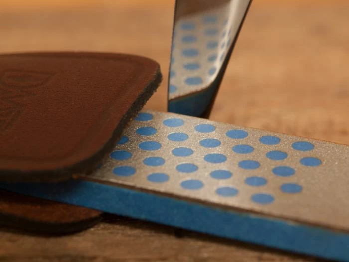 Three color-coded diamond grits cover basic edge repair, refinement, and honing. This isn’t the only sharpening stone you’ll need in your tool box, but it’s a nice one.
