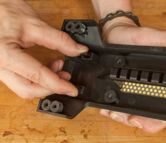 The DMT DuoBase with MagnaBase Adaptor can be used with a much wider range of sizes — all of the DiaSharp stones, including 8”, 10”, 11.5” and 12; all DuoSharp stones; and any of the 2” x 6″ Diamond Whetstones. The MagnaBase Adapter makes it easy to change stones for convenient, secure sharpening.