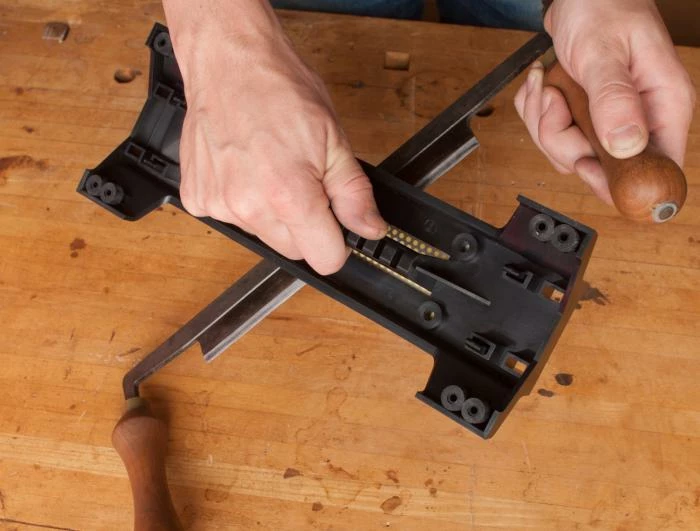 The regular DMT DuoBase holds all DMT 10″ and 8″ DuoSharp and DuoSharp Plus bench stones, and has a recess that will fit (but not clip) 2″ x 6″ Diamond Whetstones. To place a stone on the base, just snap the tabbed stops over the ends of the stone. The base can be used on a work surface, or held with the built in handle to bring the stone to the work-piece for sharpening large or heavy tools like drawknives or axes.