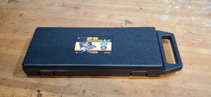The Kit includes jars of 6 highly concentrated colors – yellow, brown, red, blue, black and white – and a 2 oz container of 2P-10 Jel, along with a mixing pad (a small stack of Post-Its, so you can dispose of the mess and easily replace the pad) and mixing sticks (you might prefer a toothpick – a little of this color goes a long way) packed in a convenient case.