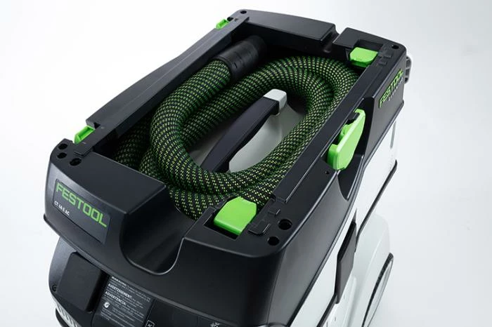 The CT 48 E HEPA AC combines the best of the giant CT 48 – Festool’s largest, most powerful dust extractors, suitable for the toughest, filthiest jobs — with Festool’s Autoclean (AC) feature, an automatic main filter cleaning that ensures continuously high suction power, previously available only in the CT 36 AC.