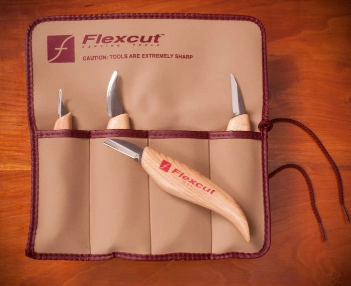 This set makes a great addition to your carving arsenal. Small blades, and Flexcuts smallest handle design help these tools excel at detail. Includes a small block of Flexcut Gold honing compound.