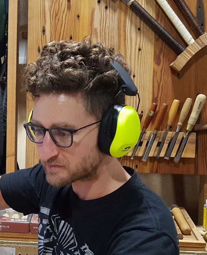 You could be forgiven for thinking that the neon green stripe on these stylish black earmuffs were made by Festool, but they’re actually made by Pyramex, a safety gear company. “I like these a lot – they’re not sweaty!” was one enthusiastic review from our un-air conditioned workshop. The protective foam ear cups are large and soft, and the nylon headband is durable and padded. A removable strap holds the muffs for use with a hard hat.The earmuffs exceed ANSI S3.19 requirements and have a noise reduction rating (NRR) of 26 decibels and a single number rating (SNR), a noise reduction metric in the European Union, of 30 dB.