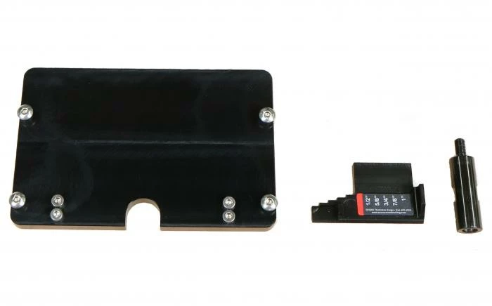 The kit contains three acclaimed Seneca tools: the RTS-500 Cutter Adapter for using DF500 cutters on your DF700; the Domi-Shim, which extends the domino XL fence’s lower travel limit, which allows the tool to be centered on 1/2″ and 3/4″ plywood; and the Imperial Thickness Gauge, which installs in under a minute andworks with the Domi-Shim for fast adjustment of the fence offset for centering on 1/2″, 5/8″, 3/4″, 7/8″, and 1″ nominal ply thicknesses.